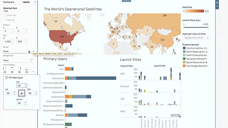 태블로 대시보드 레이아웃에서 바깥쪽 여백과 안쪽 여백을 설정하는 방법은 아래 영상으로 확인하세요.