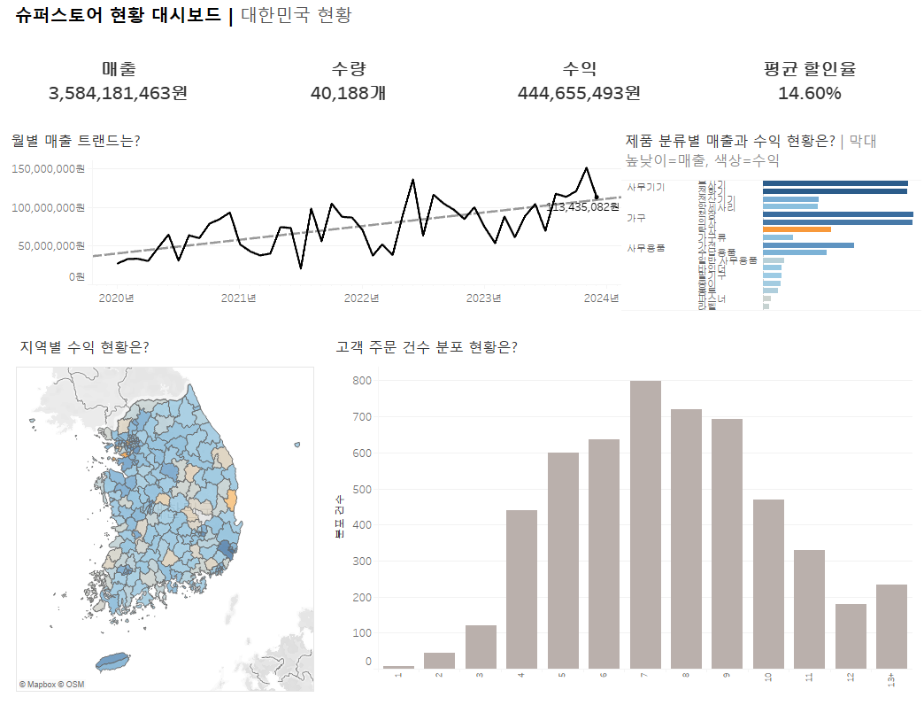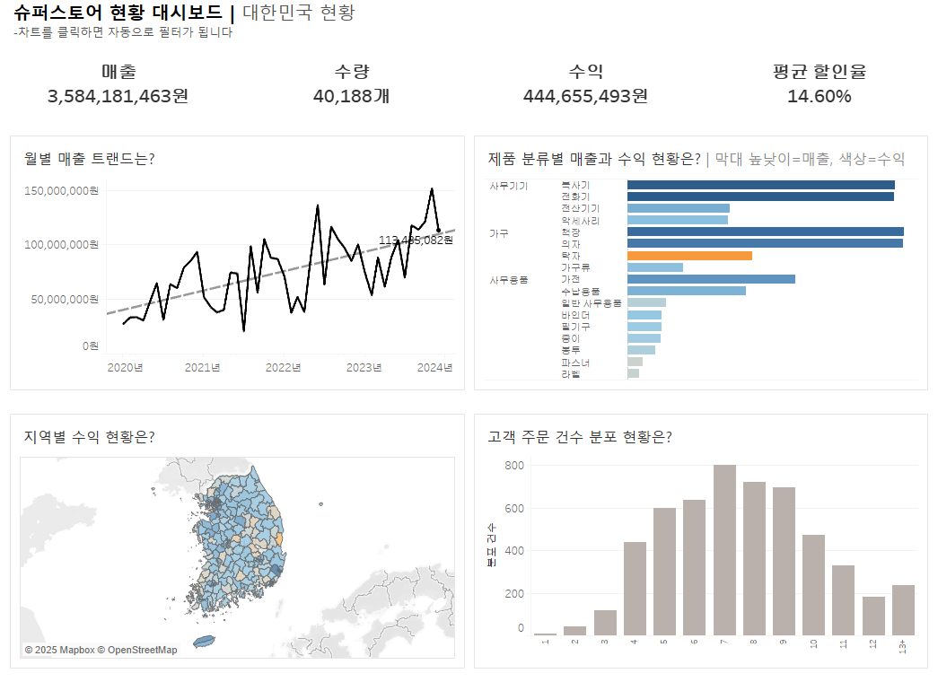 1. 대시보드의 제목영역을 더블 클릭하여 대시보드에 알맞은 제목( '슈퍼스토어 현황 대시