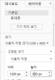 2. 대시보드 크기 설정하기(1200x800 크기)